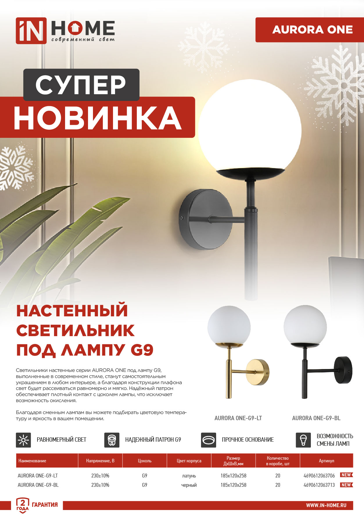 В новый дайджест In Home вошла подборка современных светильников — от элегантных настенных моделей под G9 до универсальных трековых решений под E27. Все модели сочетают актуальный дизайн, продуманную конструкцию и возможность подбора световых параметров благодаря сменным лампам.