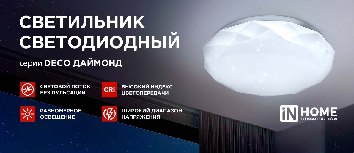 А благодаря широкому диапазону напряжения, светильники будут надежно работать даже при нестабильной питающей сети, обеспечивая световой поток без пульсаций. Выберите светотехнику DECO ДАЙМОНД, и ваш интерьер заиграет новыми красками!