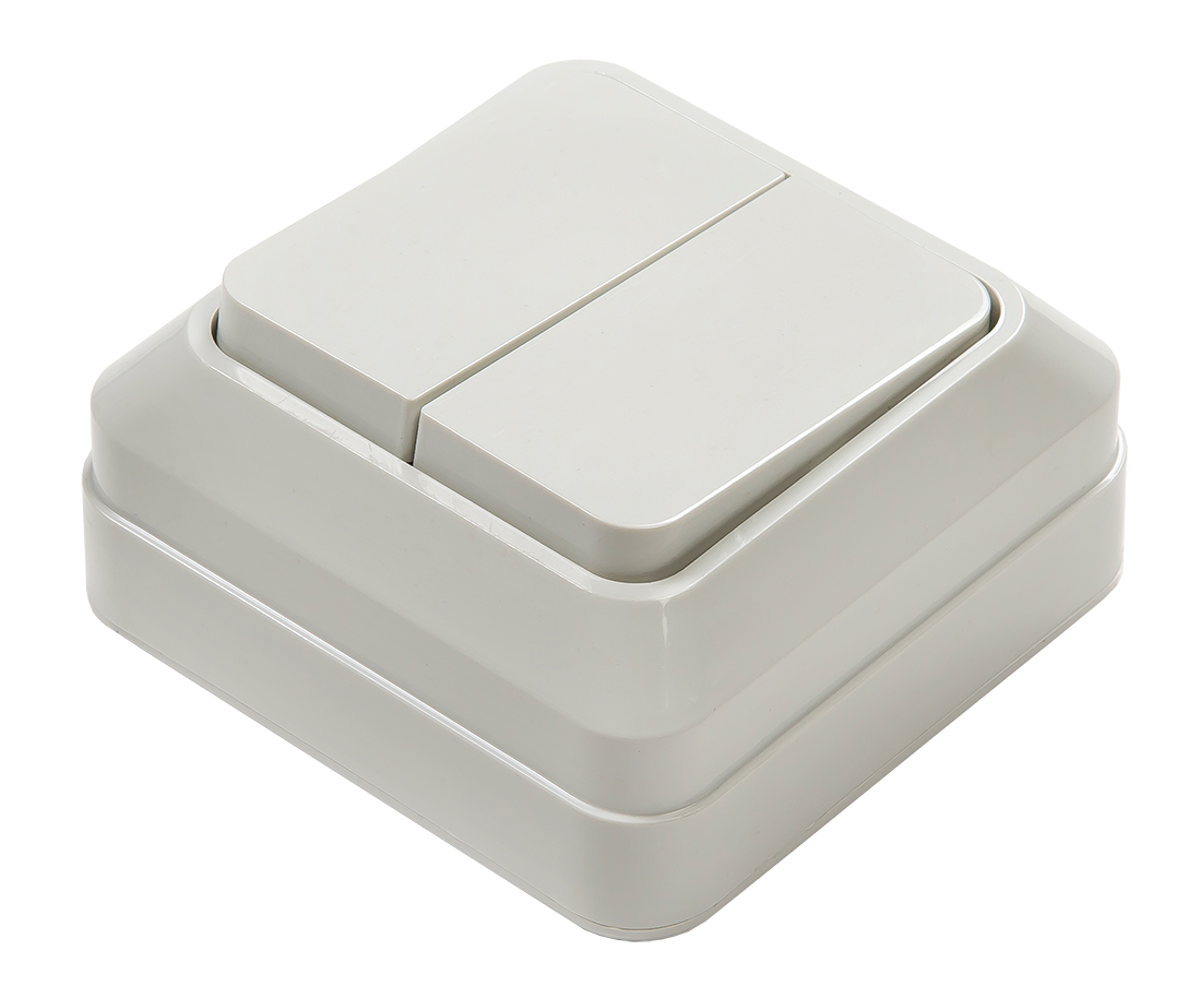 Выключатель двухклавишный BOLLETO белый накладной 7023 IN HOME