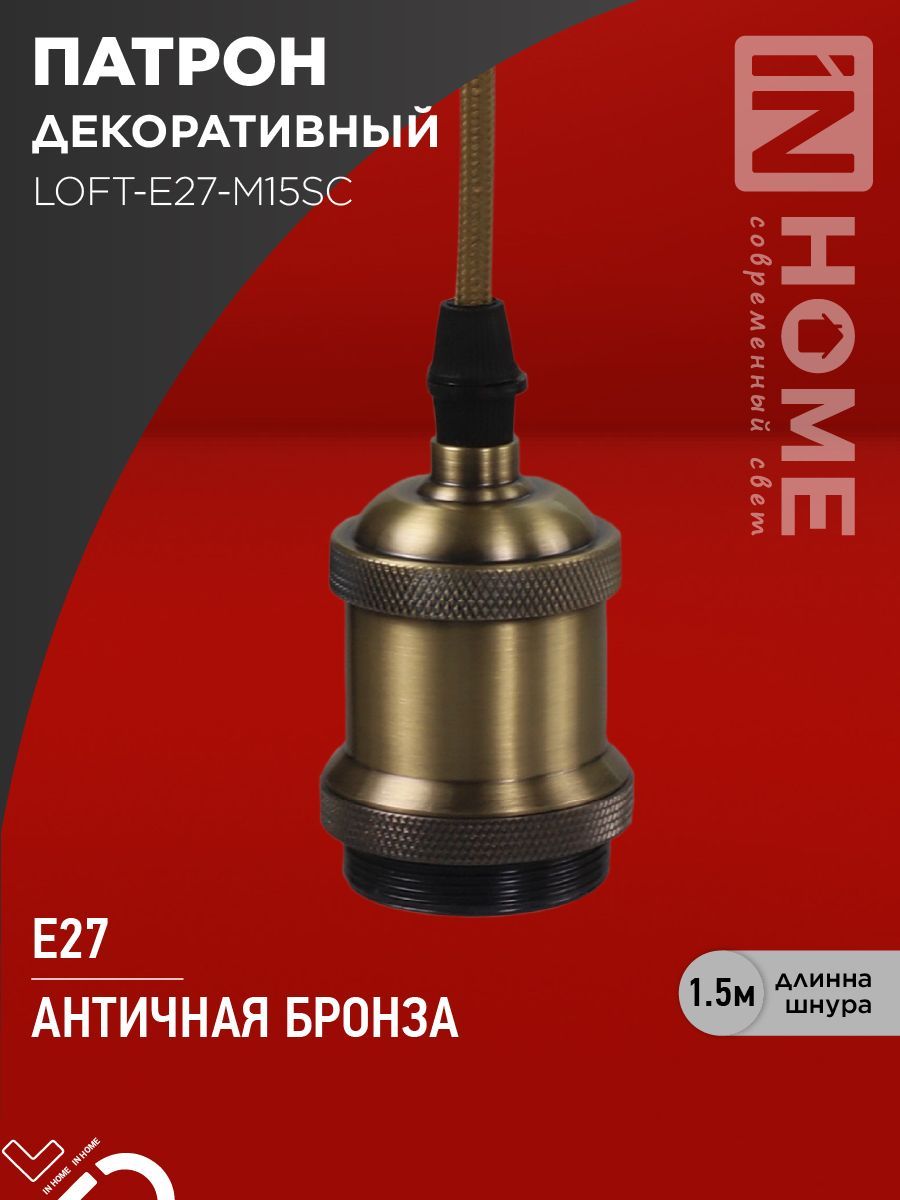 Патрон LOFT-Е27-R15AB со шнуром 1,5м античная бронза IN HOME
