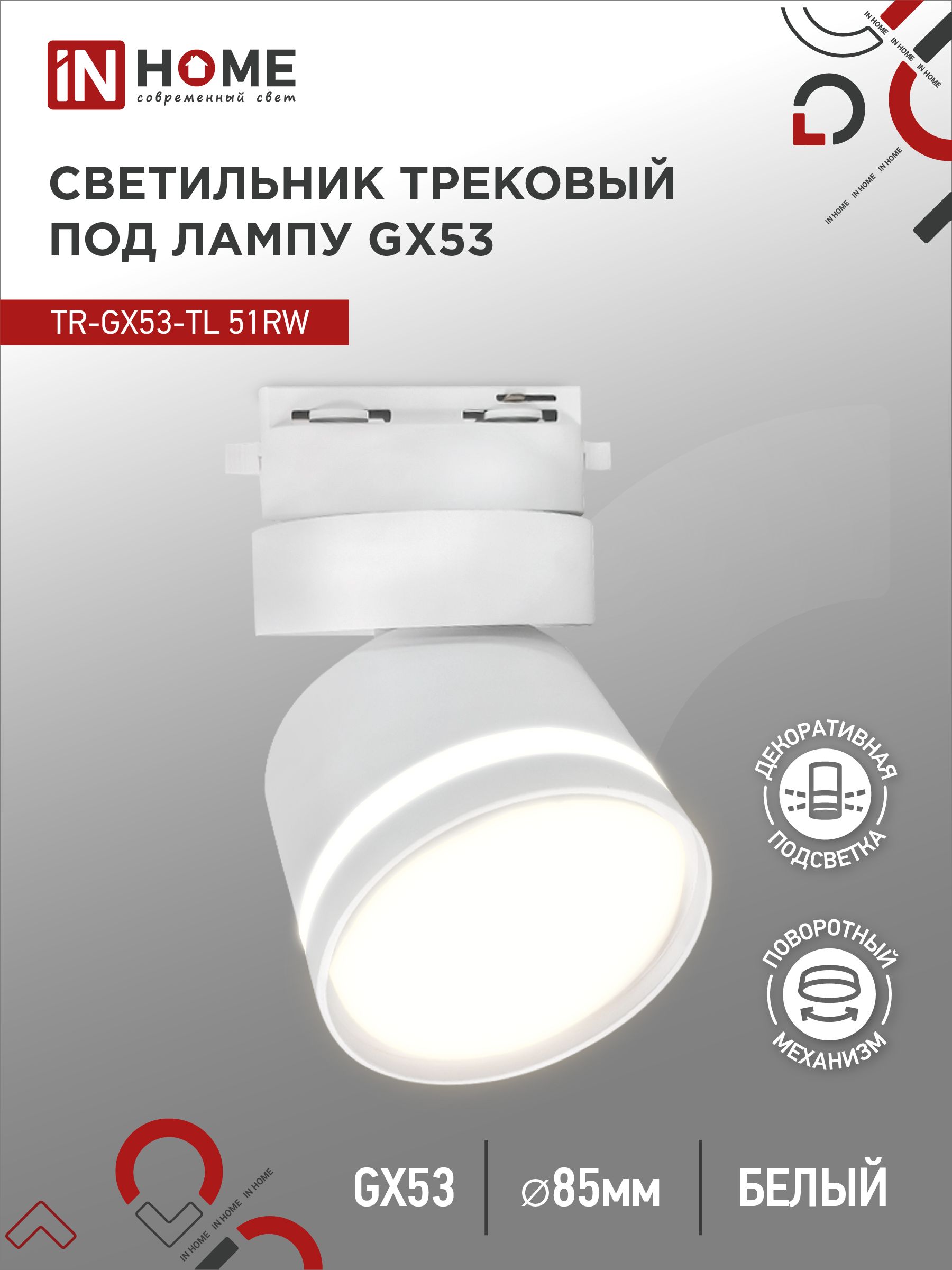 Светильник трековый TR-GX53-TL 51RW под лампу GX53 с подсветкой белый IN HOME