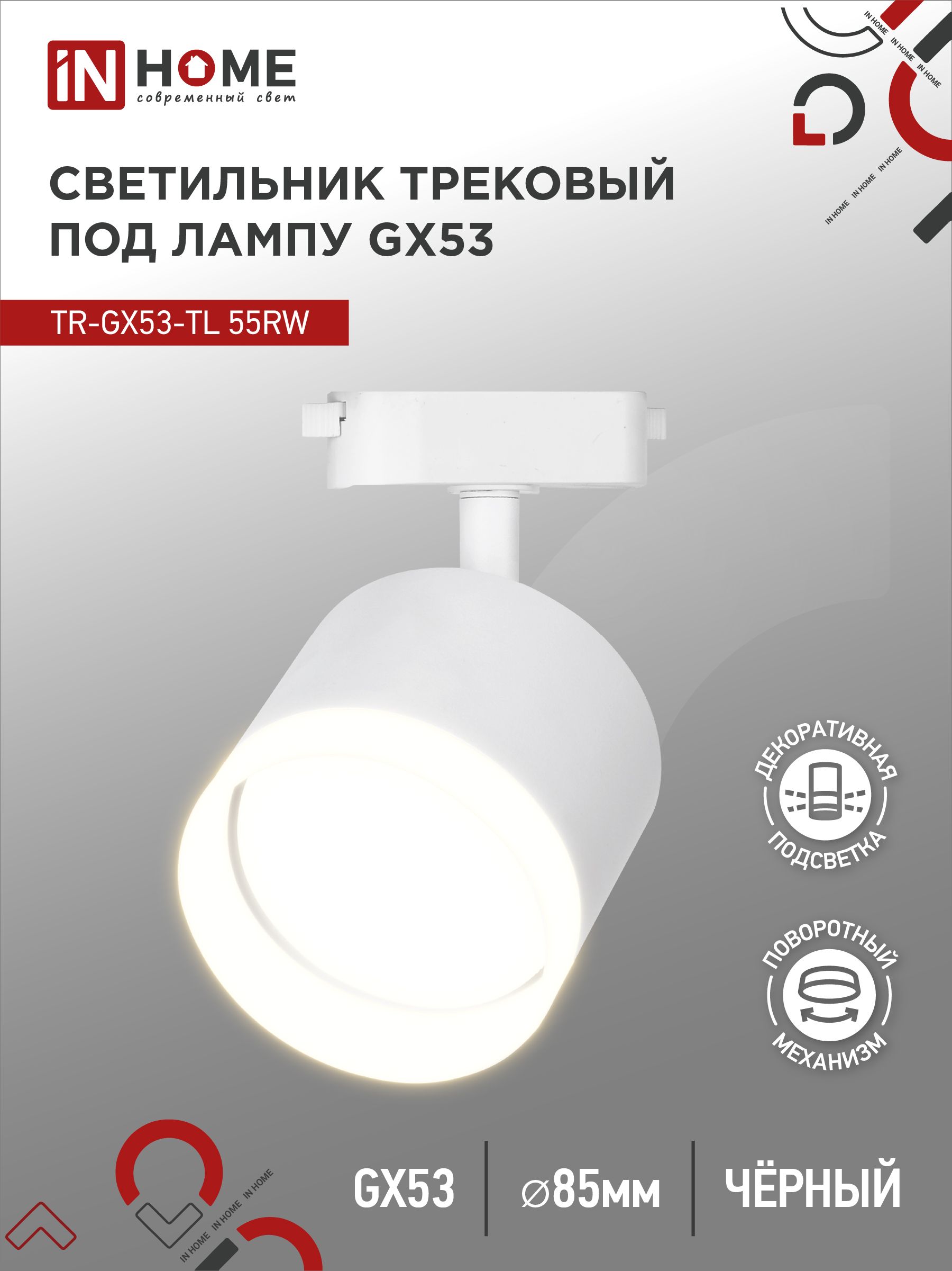 Светильник трековый TR-GX53-TL 55RW-ER под лампу GX53 с подсветкой белый IN HOME