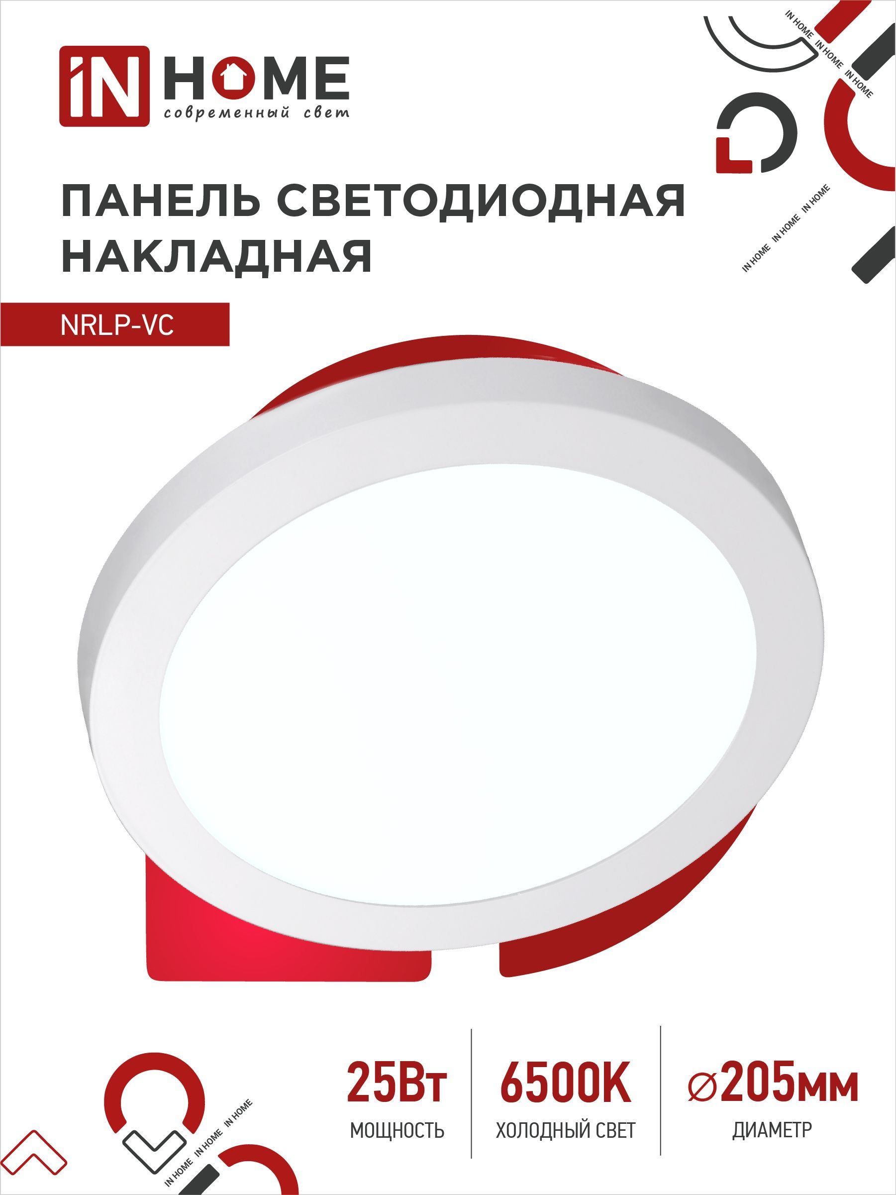 Панель светодиодная накладная круглая NRLP-VC 25Вт 230В 6500К 2000Лм 205мм белая IP40 IN HOME