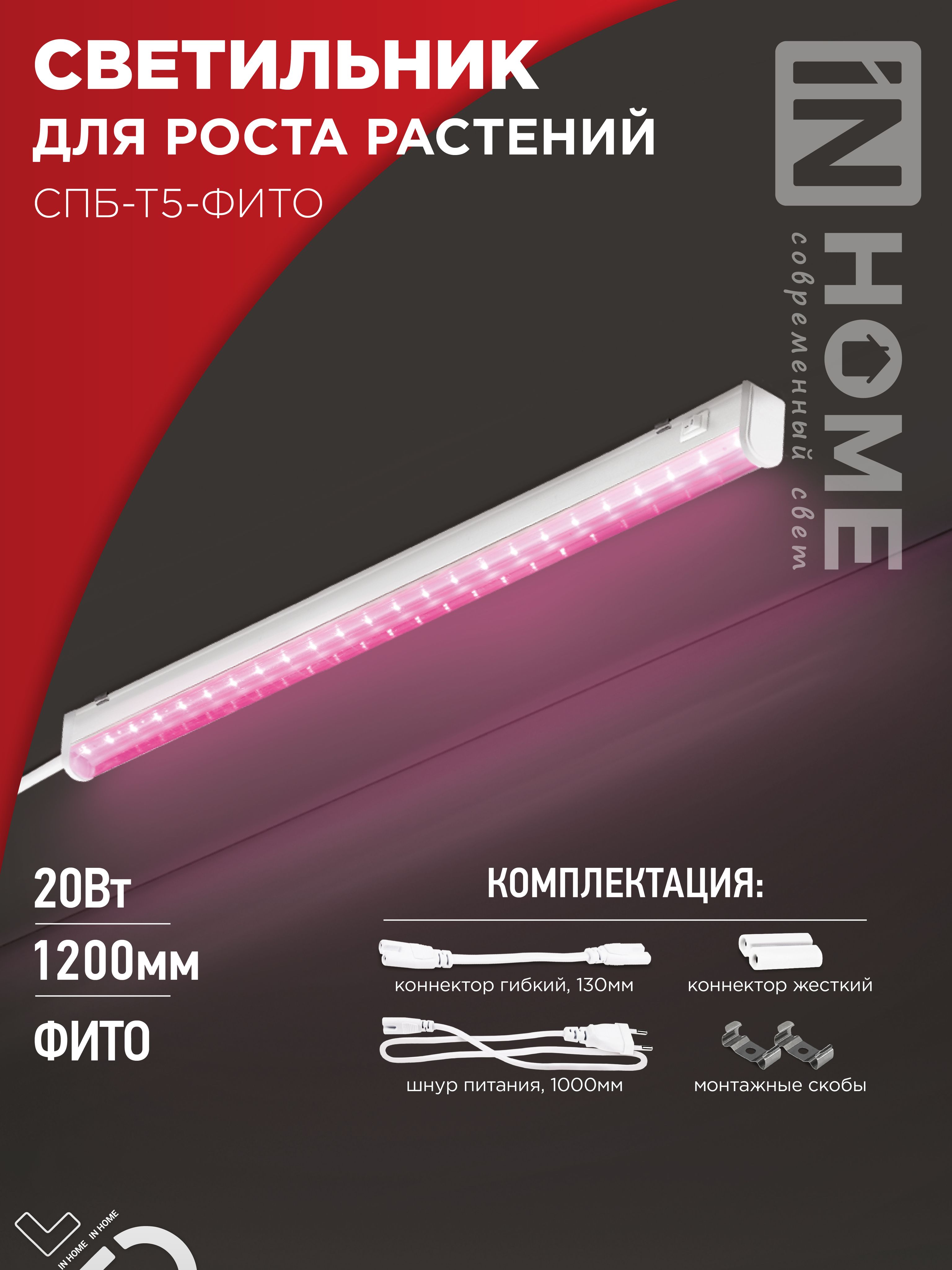 Светильник светодиодный СПБ-Т5 STD-ФИТО красно-синий спектр 20Вт 1200мм IN HOME