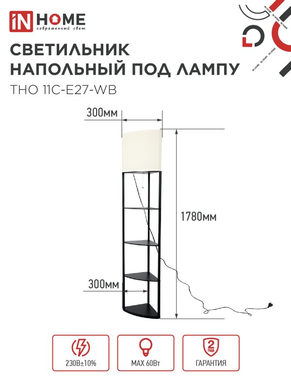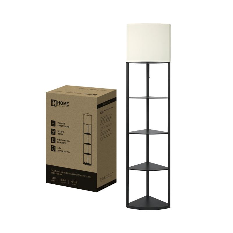 Светильник напольный под лампу этажерка угловая ТНО 11С-Е27-WB белый абажур, черный корпус IN HOME