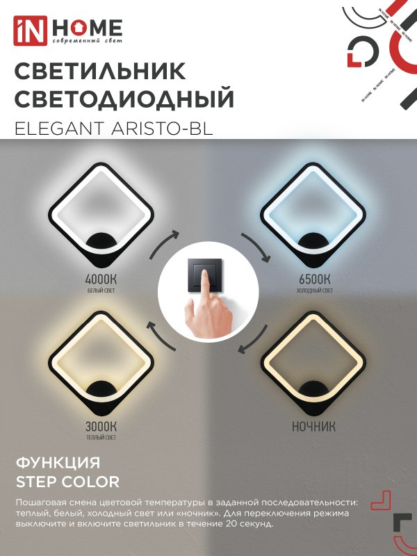 Светильник светодиодный ELEGANT ARISTO-BL 30Вт 230В 3000-6500K 2400Лм STEP COLOR черный IN HOME