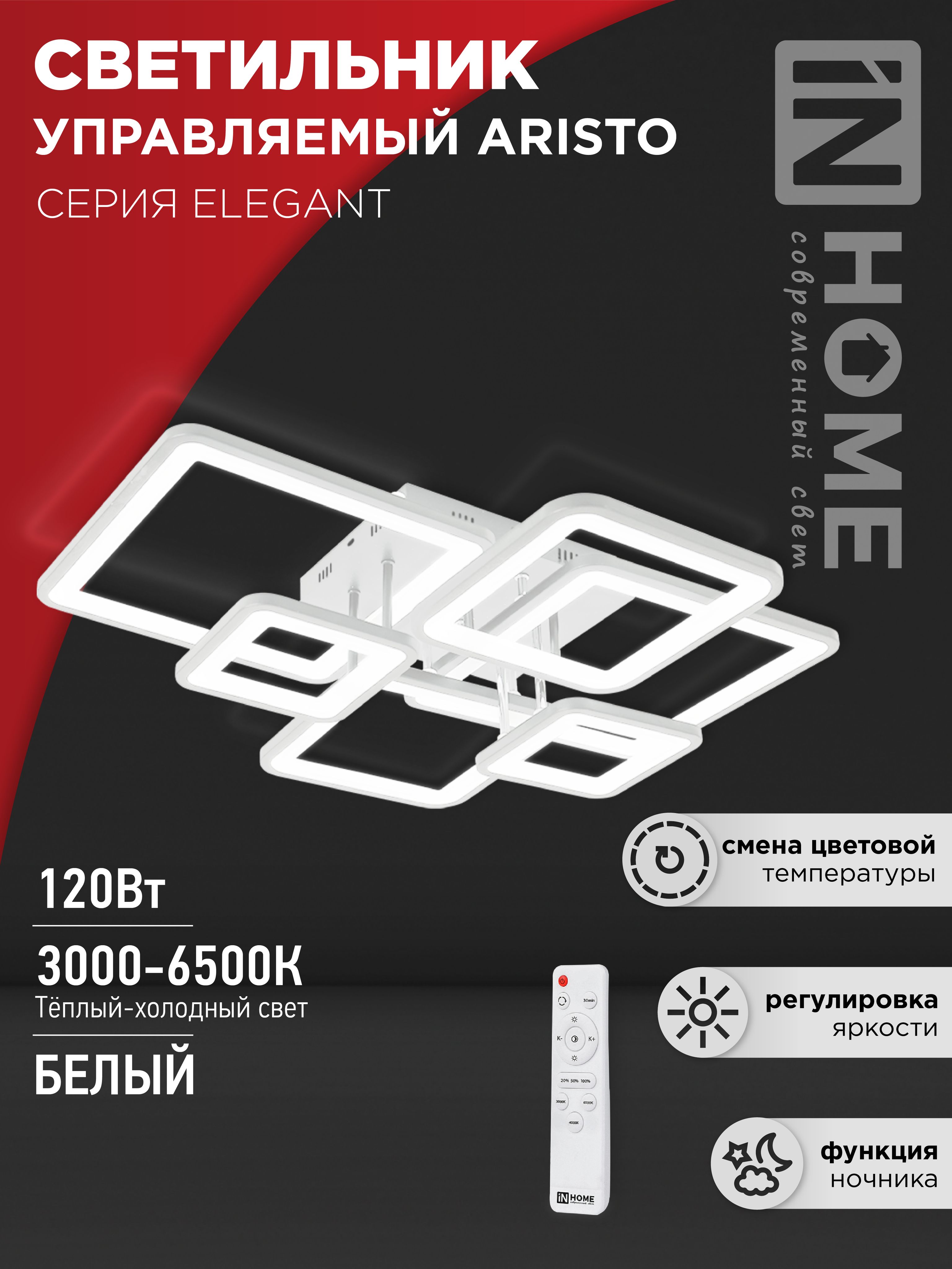 Светильник светодиодный ELEGANT ARISTO-W 120Вт 230В 3000-6500K 685х585х150мм пульт ДУ белый IN HOME
