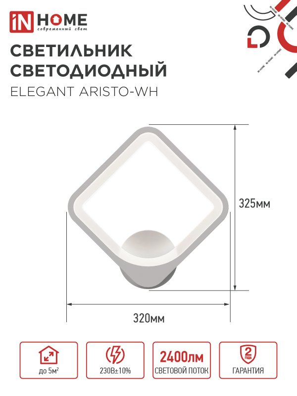 Светильник светодиодный ELEGANT ARISTO-WH 30Вт 230В 3000-6500K 2400Лм STEP COLOR белый IN HOME
