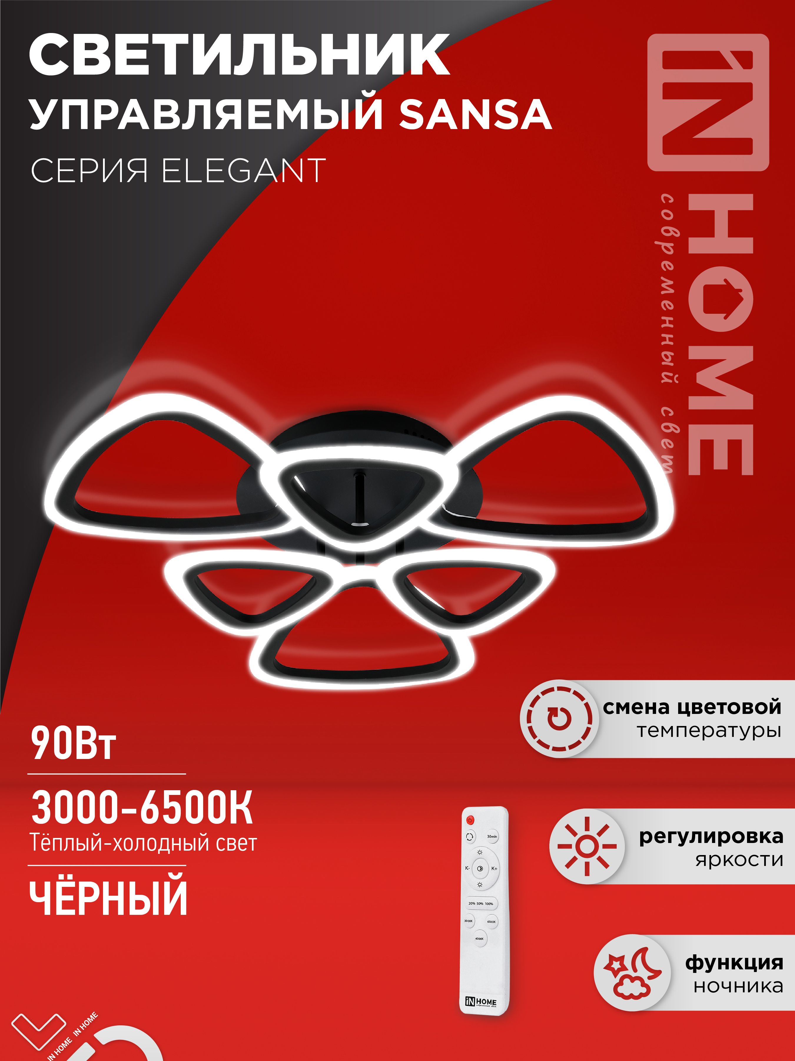 Светильник светодиодный ELEGANT SANSA-B 90Вт 230В 3000-6500K 650х650х130мм c пультом ДУ черный IN HOME