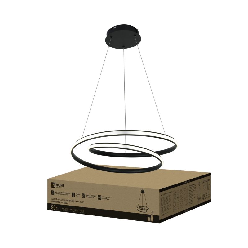 Светильник светодиодный ESTETIKA DALI-HL-90BL 90Вт 230В 3000-6500K 500х500x120мм 1.2м трос ДУ черный IN HOME
