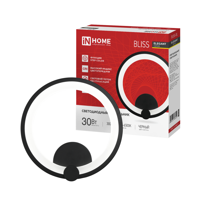 Светильник светодиодный ELEGANT BLISS-BL 30Вт 230В 3000-6500K 2400Лм STEP COLOR черный IN HOME