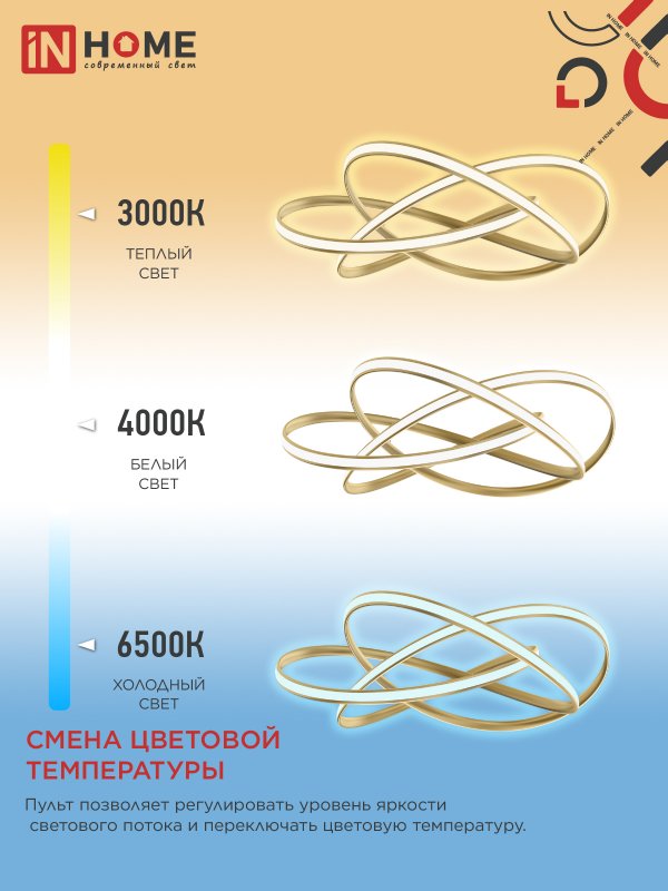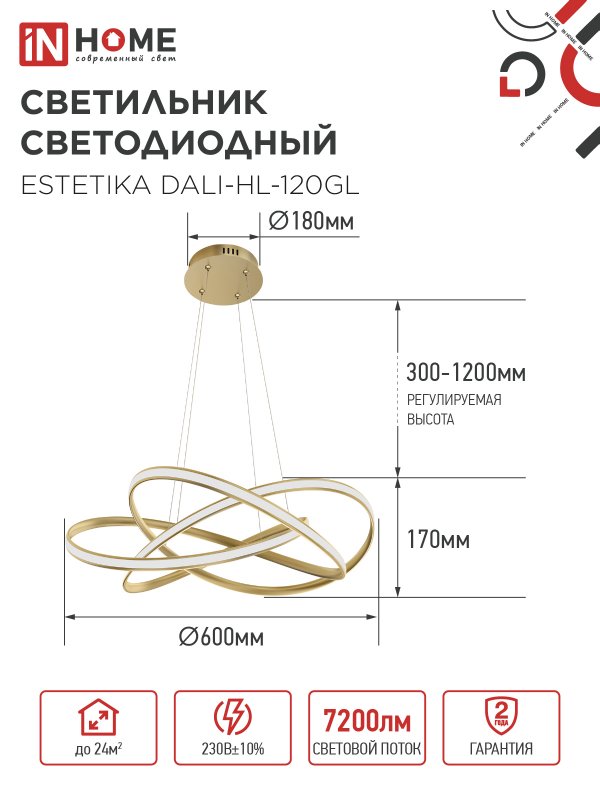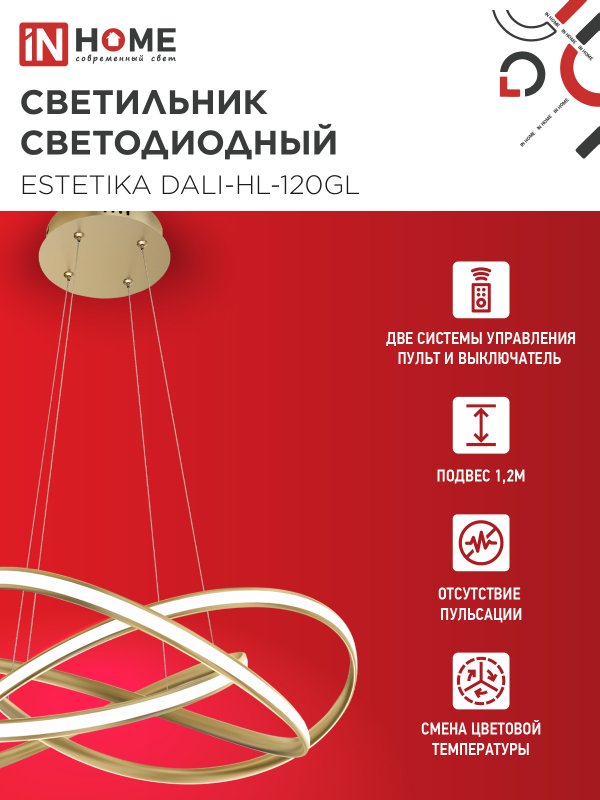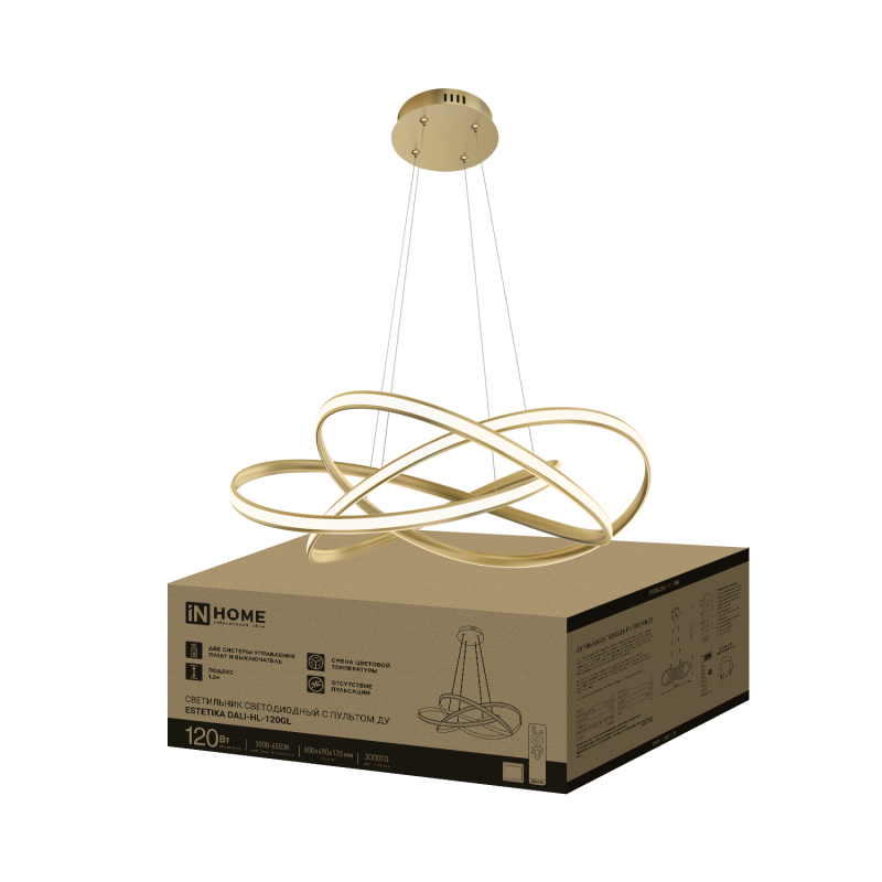 Светильник светодиодный ESTETIKA DALI-HL-120GL 120Вт 230В 3000-6500K 600х490x170мм 1.2м трос ДУ золото IN HOME