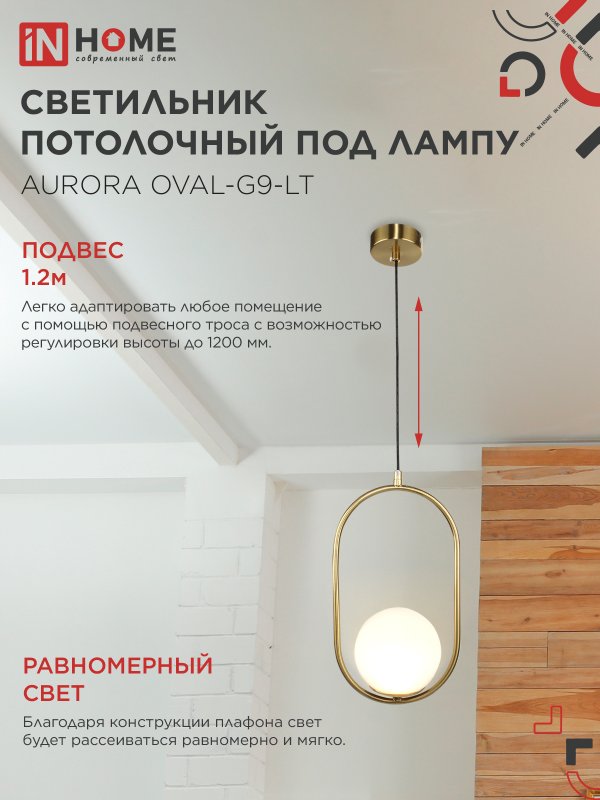 Светильники подвесные серии AURORA OVAL под лампу G9, выполненные в современном стиле, позволяют легко адаптировать их в любое помещение с помощью подвесного троса с возможностью регулировки высоты до 1200 мм, а благодаря конструкции плафона свет будет рассеиваться равномерно и мягко.