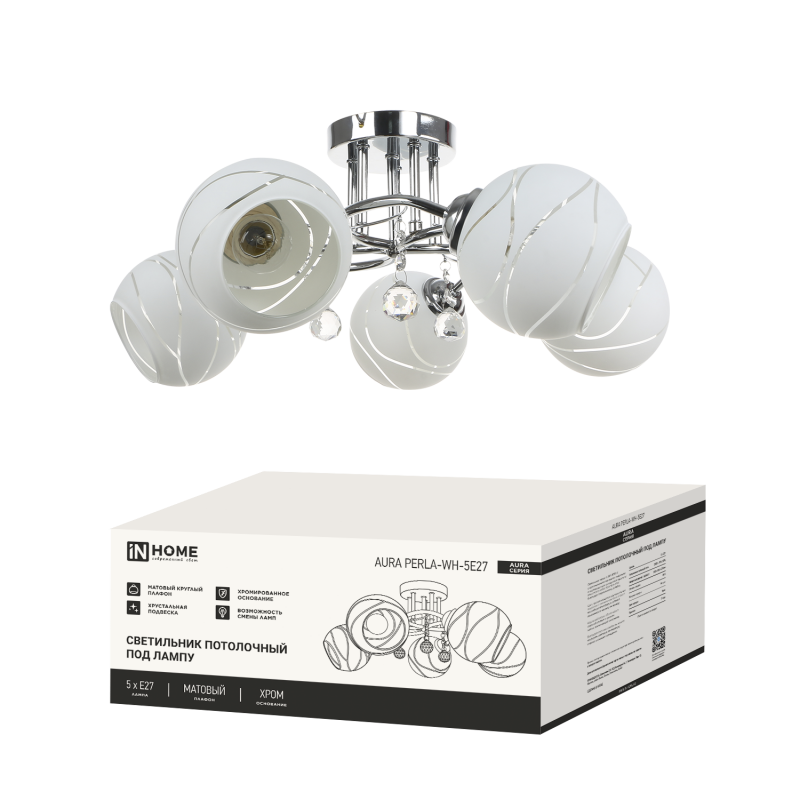 Люстра под лампу AURA PERLA-WH-5E27 5хЕ27 матовый плафон хромированный корпус IN HOME