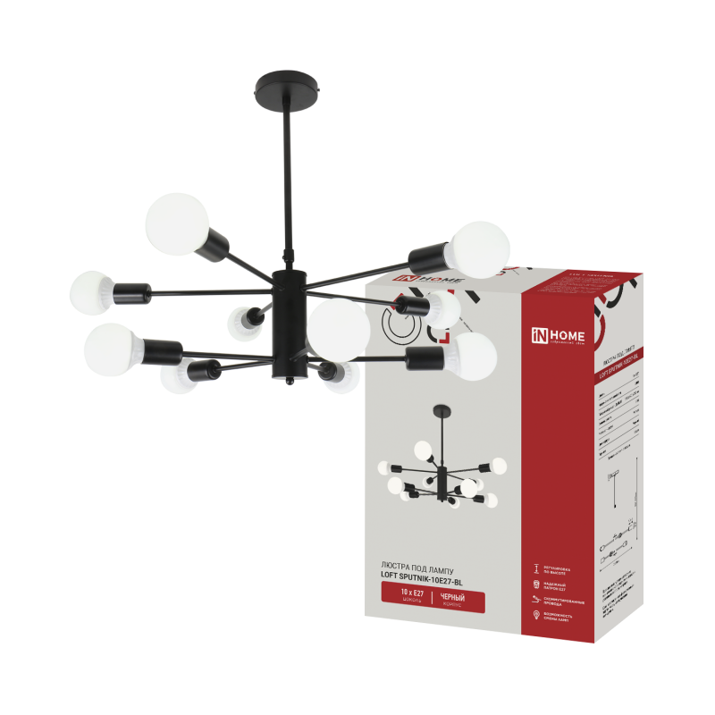 Люстра под лампу LOFT SPUTNIK-10E27-BL 10хЕ27 черный IN HOME
