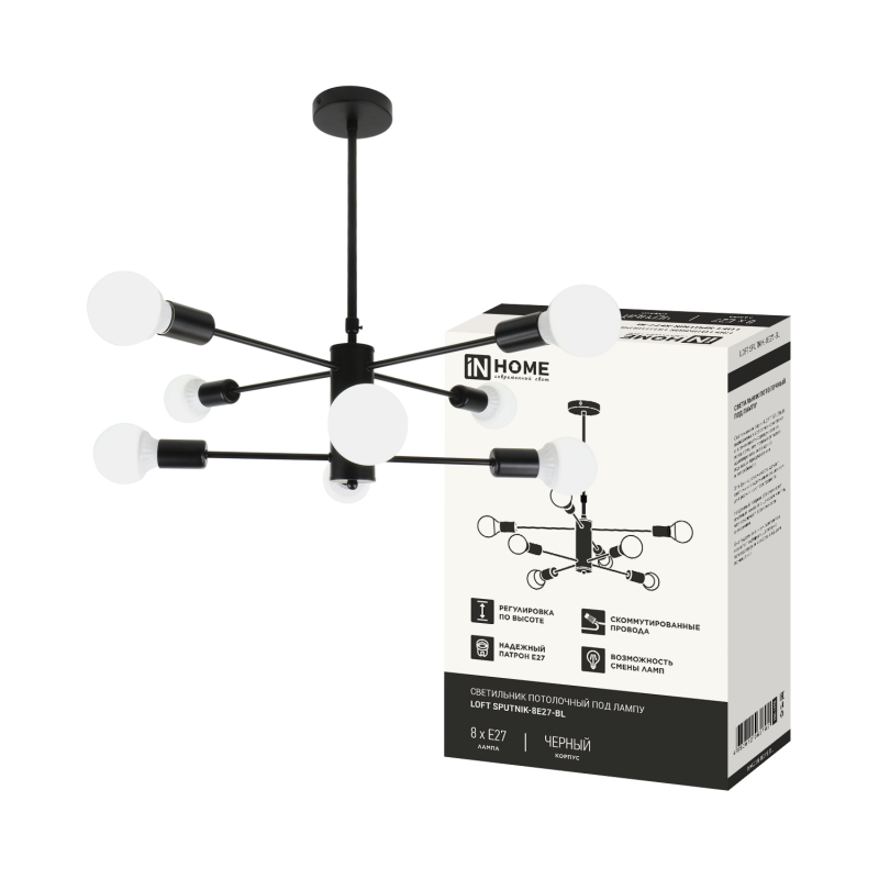 Люстра под лампу LOFT SPUTNIK-8E27-BL 8хЕ27 черный IN HOME