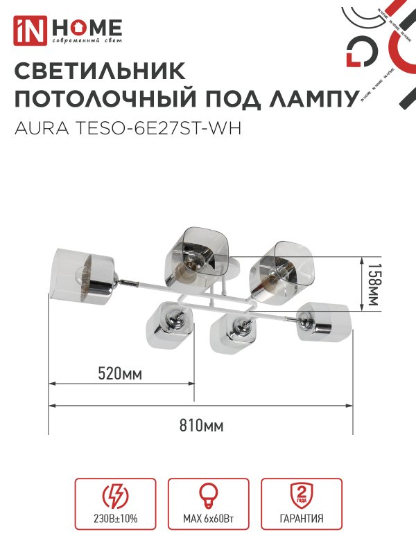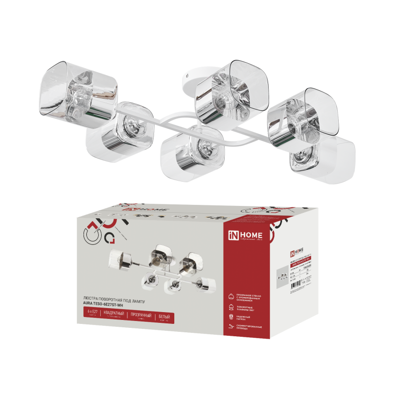 Люстра поворотная под лампу AURA TESO-6E27ST-WH 6хЕ27 прозрачные плафоны, белый корпус IN HOME