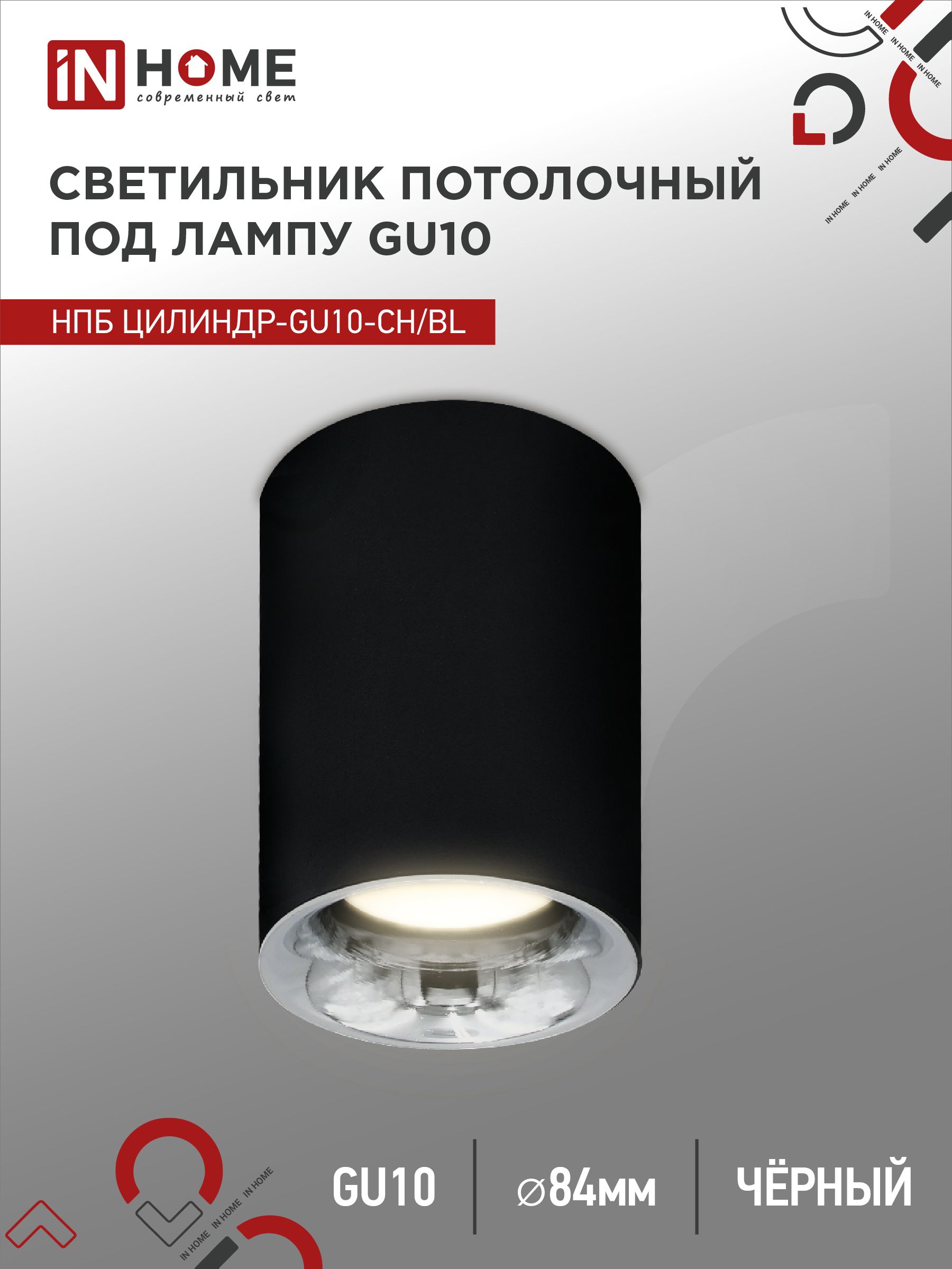 Светильник потолочный НПБ ЦИЛИНДР-GU10-CH/BL под лампу GU10 70x100мм черный IN HOME