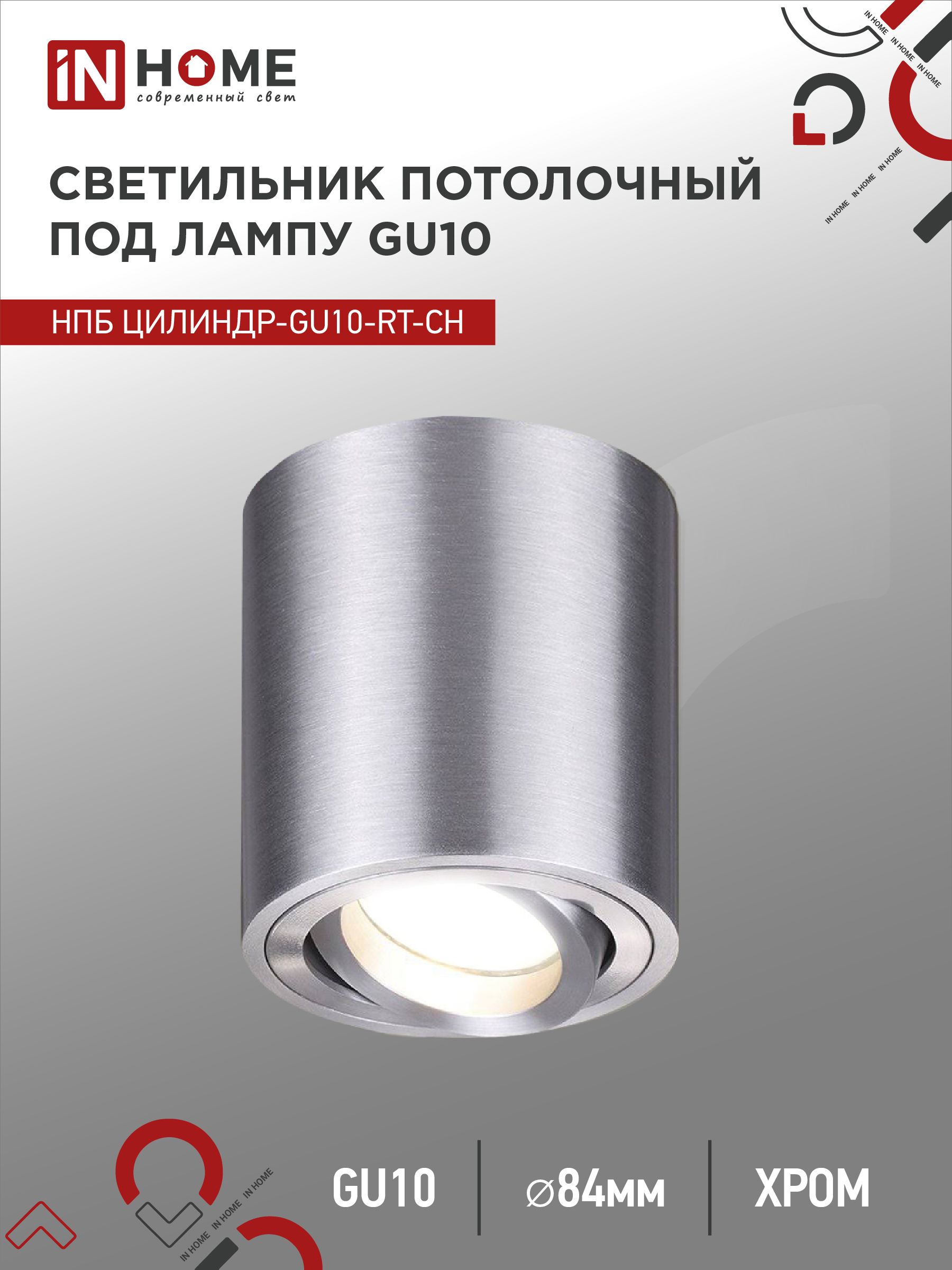 Светильник потолочный НПБ ЦИЛИНДР-GU10-RT-CH поворотный под лампу GU10 80х84мм хром IN HOME