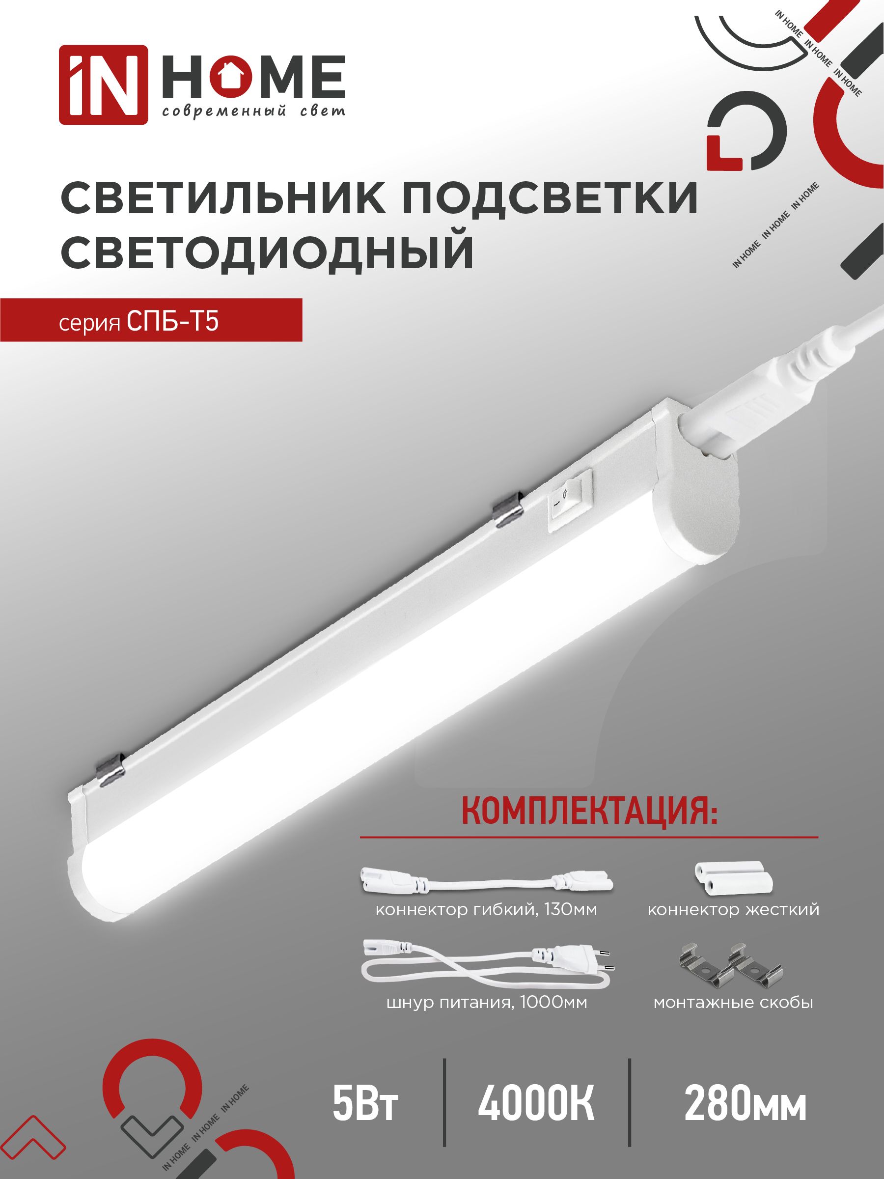 Светильник светодиодный СПБ-Т5 5Вт 230В 4000К 450Лм 300мм IN HOME