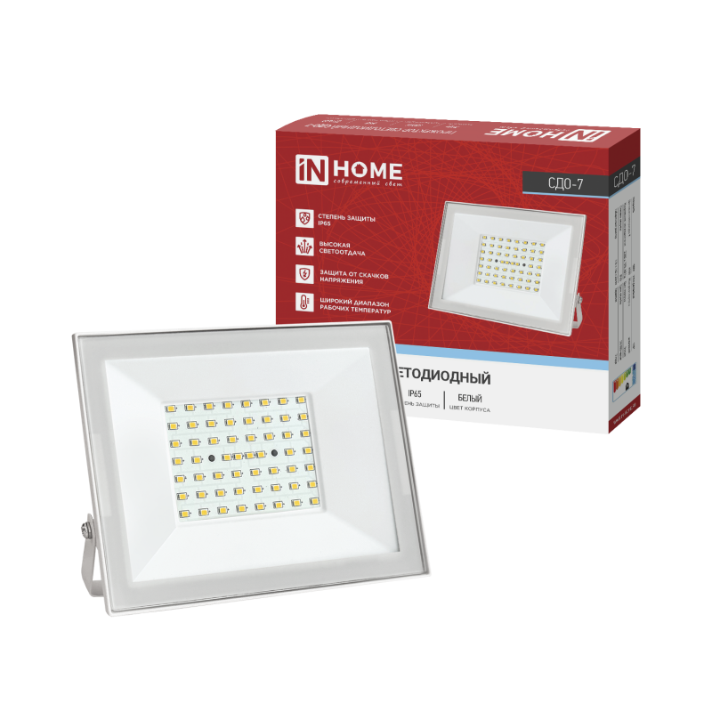 Прожектор светодиодный СДО-7 70Вт 230В 6500К IP65 белый IN HOME