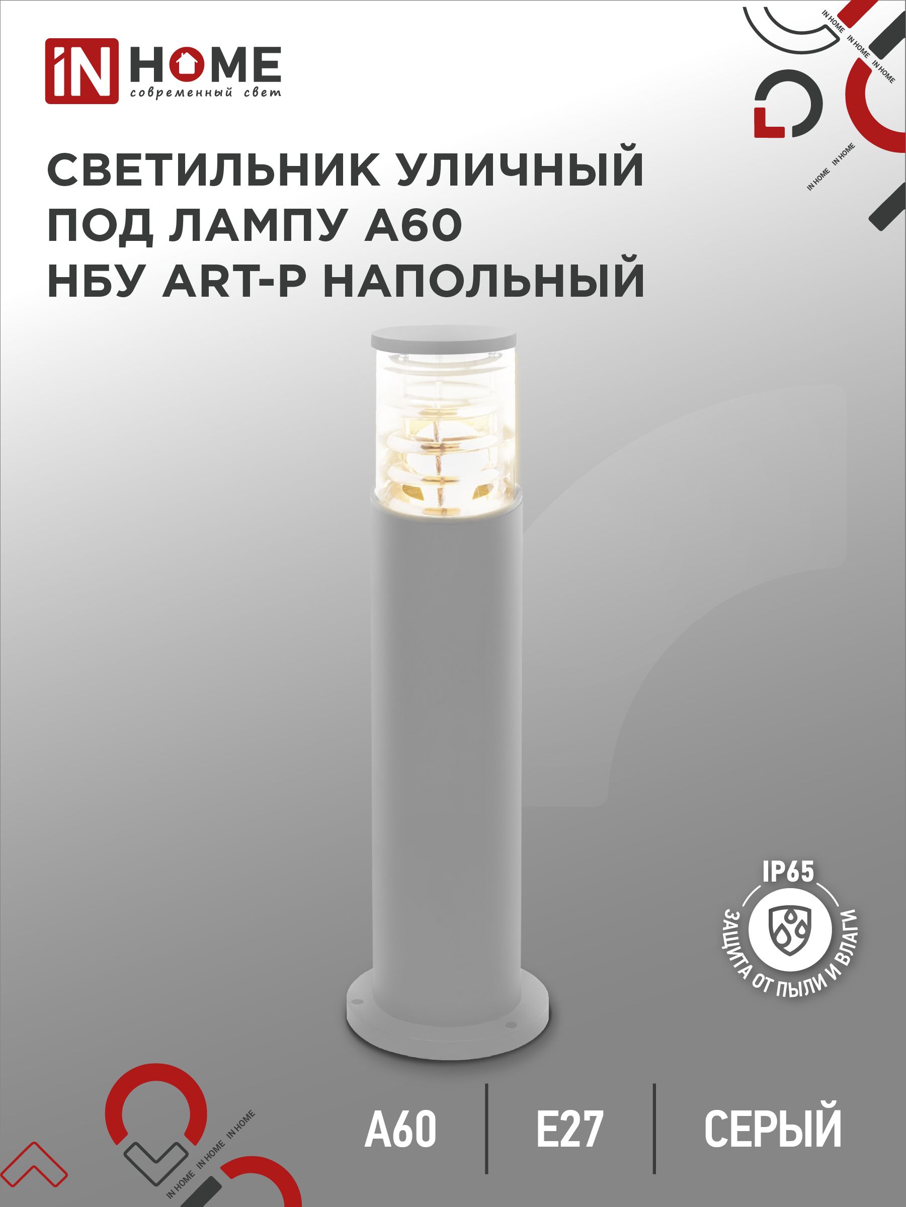 Светильник уличный напольный НБУ ART-PT-A60-GR алюминиевый под лампу А60 Е27 600мм серый IP54 IN HOME