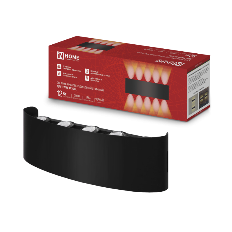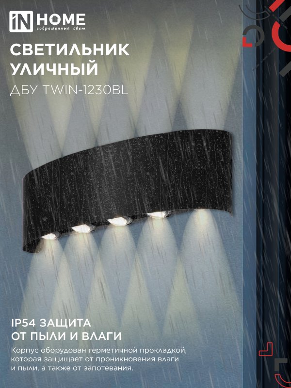 Светильник уличный светодиодный ДБУ TWIN-1230BL 12Вт 3000К 270х80 черный IP54 IN HOME