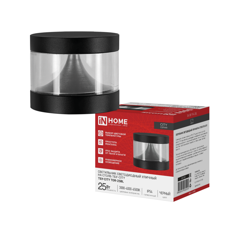 Светильник уличный светодиодный на столб ТБУ-CITY TOR-25BL 25Вт 3000/4000/6500К 90x120мм черный IP54 IN HOME