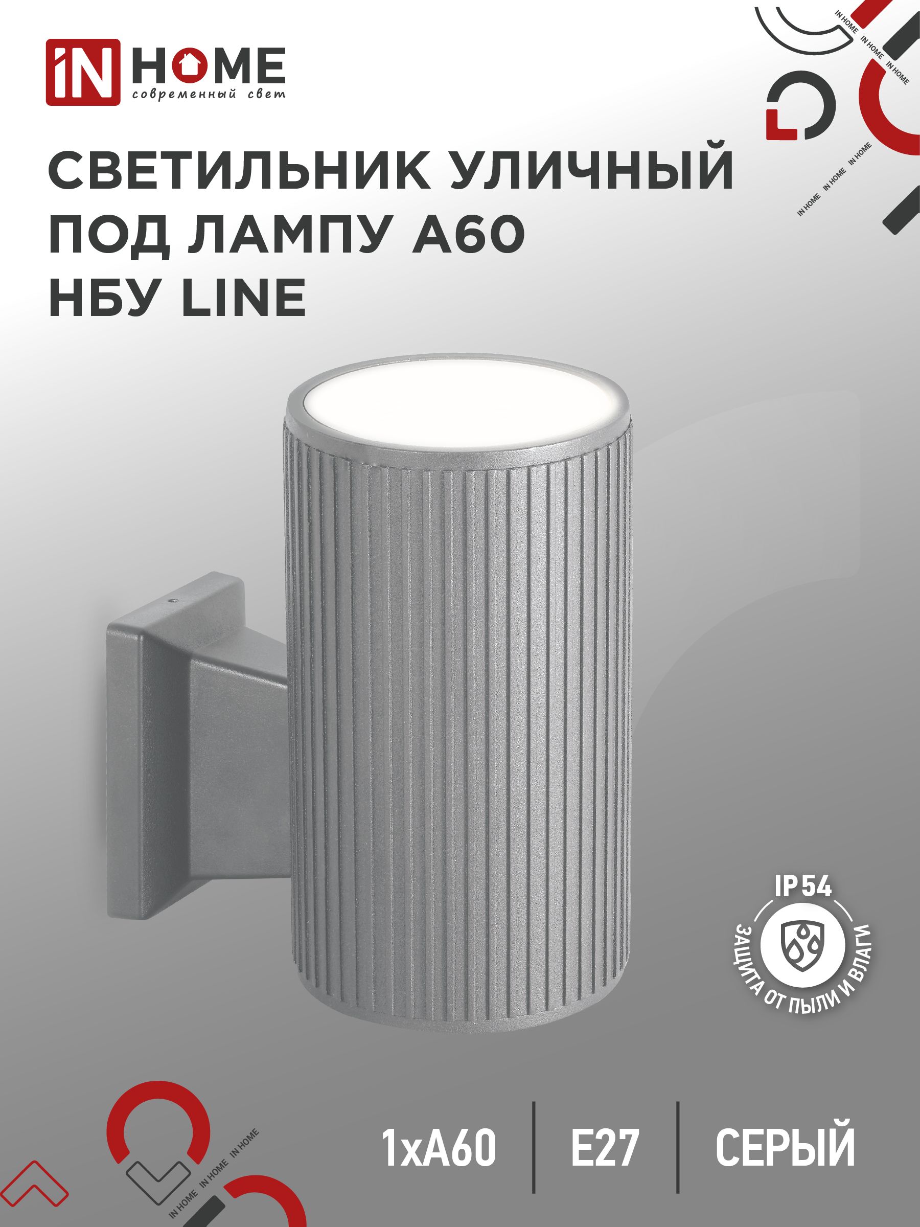 Светильник уличный настенный односторонний НБУ LINE-1хA60-GR алюминиевый под 1хA60 E27 серый IP54 IN HOME