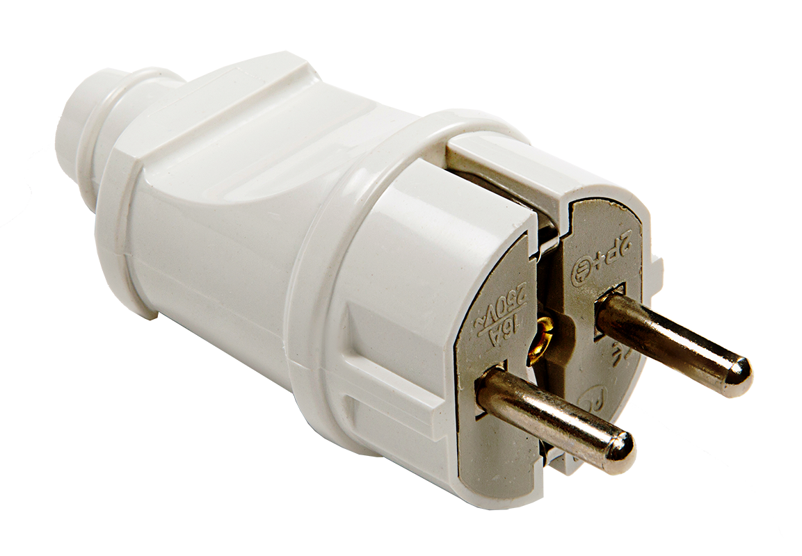 Вилка прямая с заземлением 16А белая 4140 IN HOME